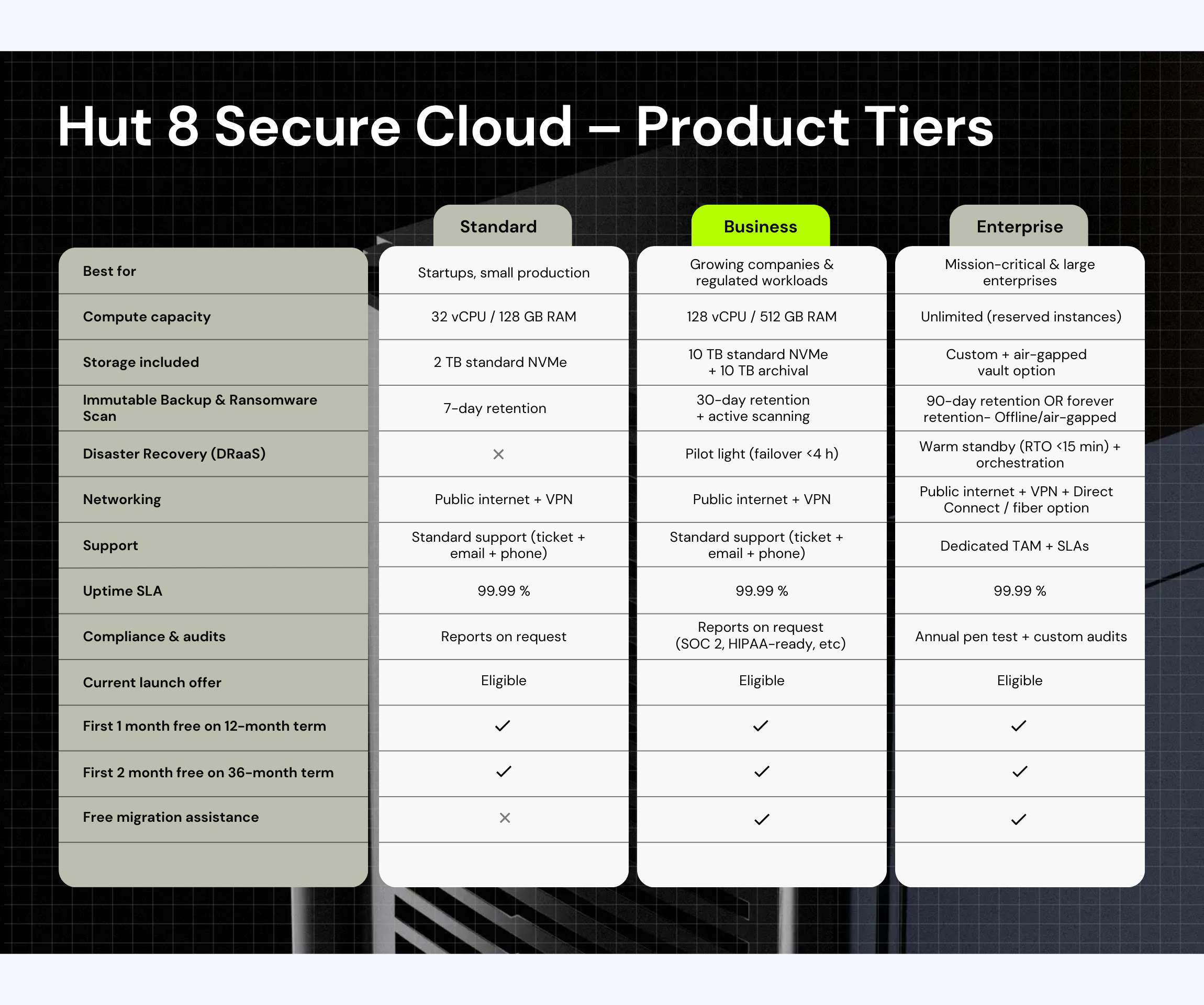 Hut 8 Secure Cloud is purpose-built for organizations that need more than just elasticity.
